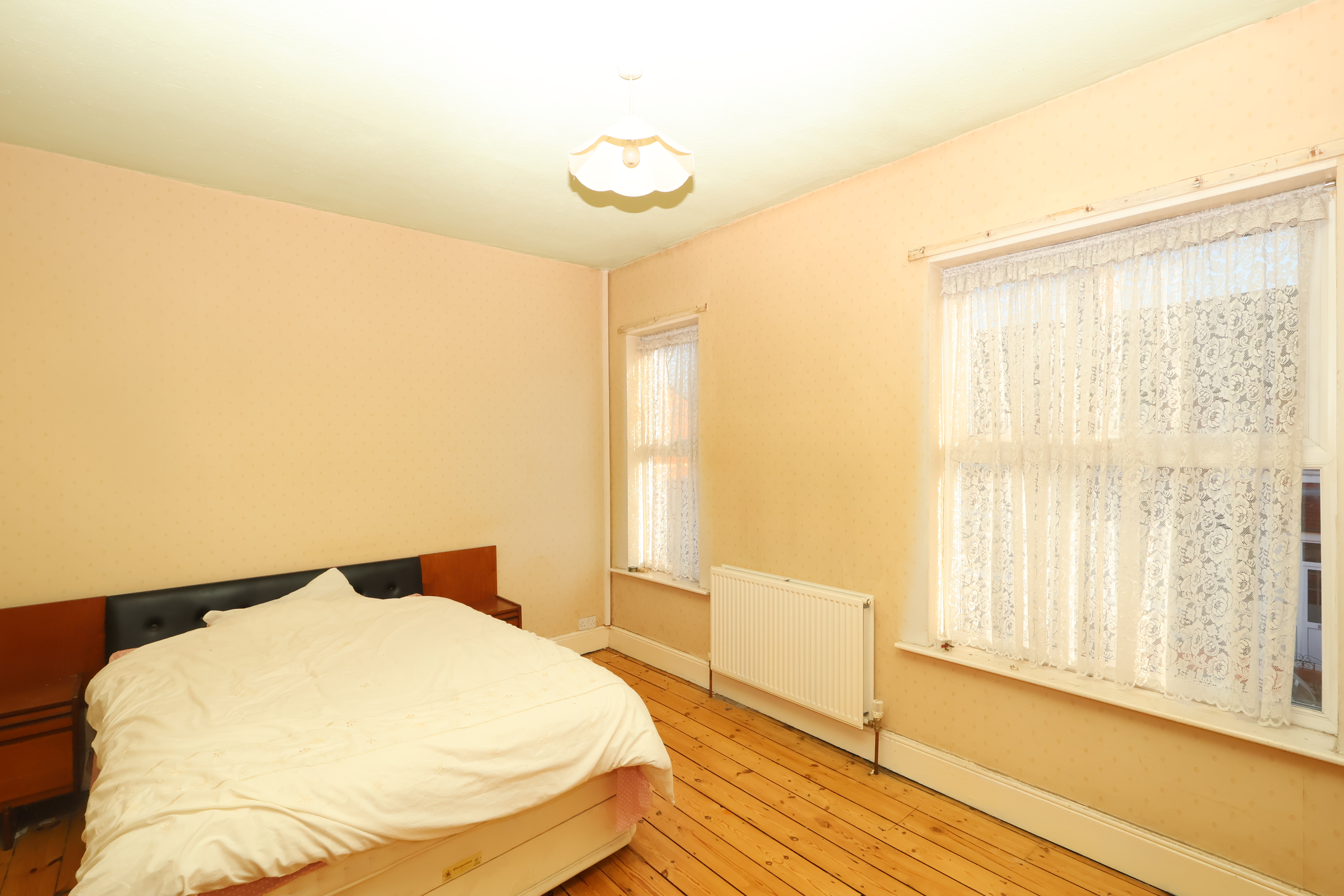 To the first floor, there are two spacious double bedrooms, with the main bedroom benefiting from dual windows, allowing an abundance of natural light to fill the room. A useful storage room offers additional flexibility, while a wet-room style bathroom completes the upper-floor layout.