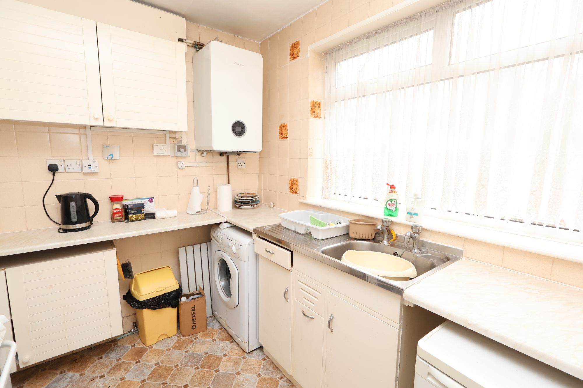 The ground floor features a spacious layout, offering excellent scope for redesign and improvement. The kitchen, while currently dated, presents an opportunity to be reconfigured into a contemporary and functional space tailored to modern living.